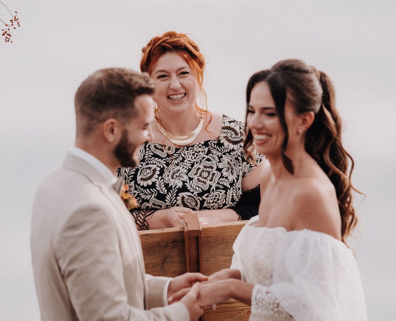Wir hatten immer etwas Respekt davor eine Traurednerin zu haben die unser Leben und unsere Geschichte wiedergibt und dachten das könnte eventuell falsch und nicht richtig rüberkommen aber du hast uns von Anfang an so ein gutes Gefühl gegeben und Vertrauen geschaffen. Und was sollen wir sagen … es war goldrichtig dir das anzuvertrauen!